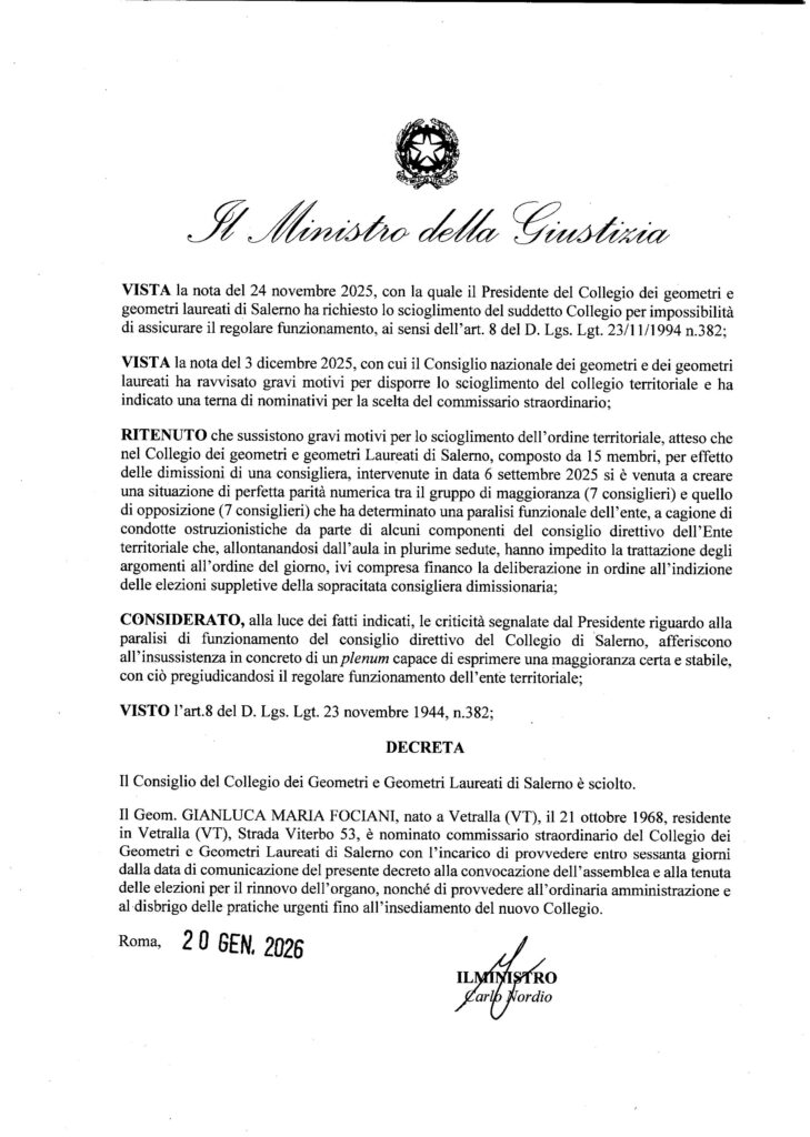 DECRETO MINISTERIALE DI COMMISSARIAMENTO DEL 21/01/2026